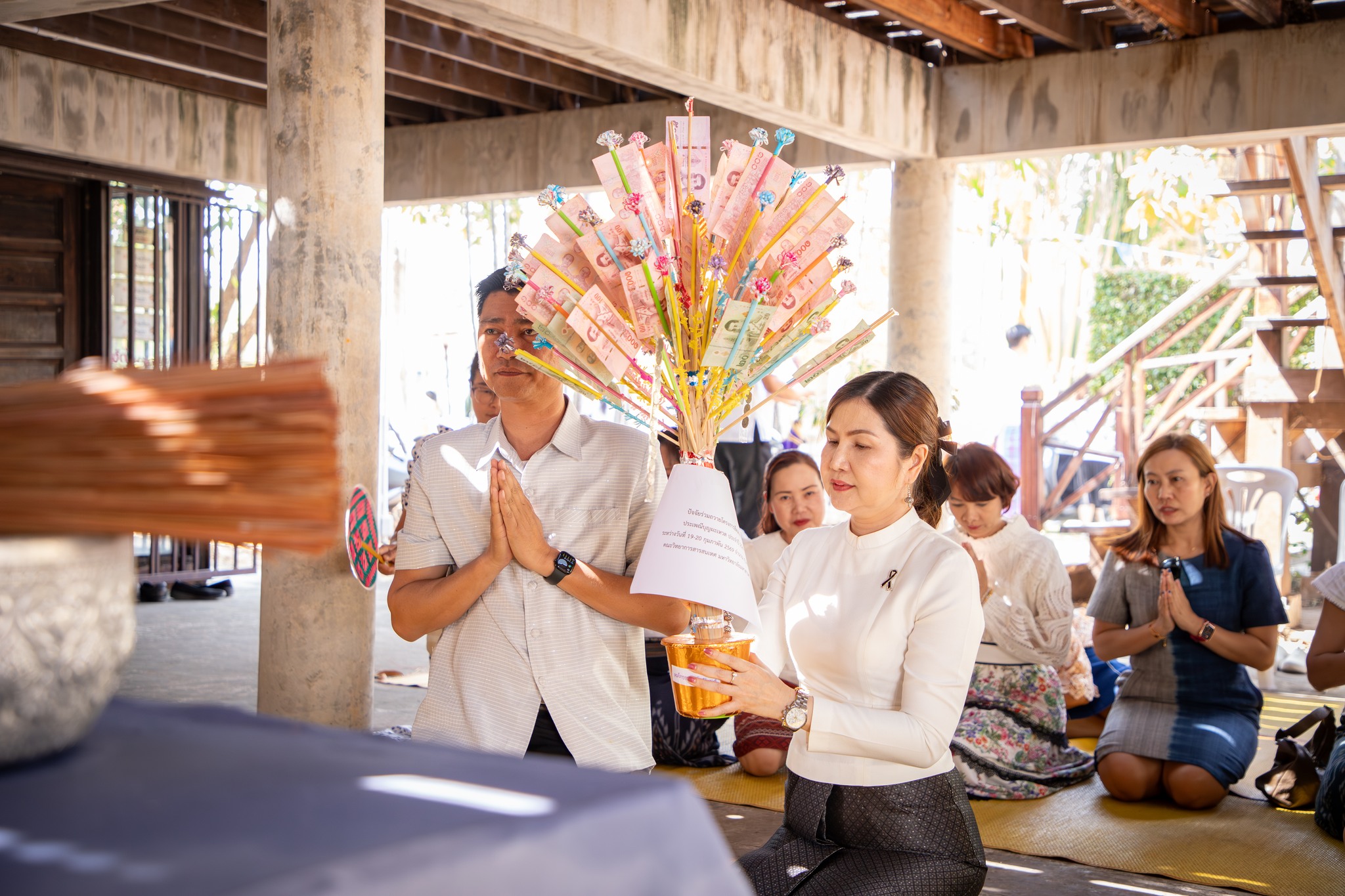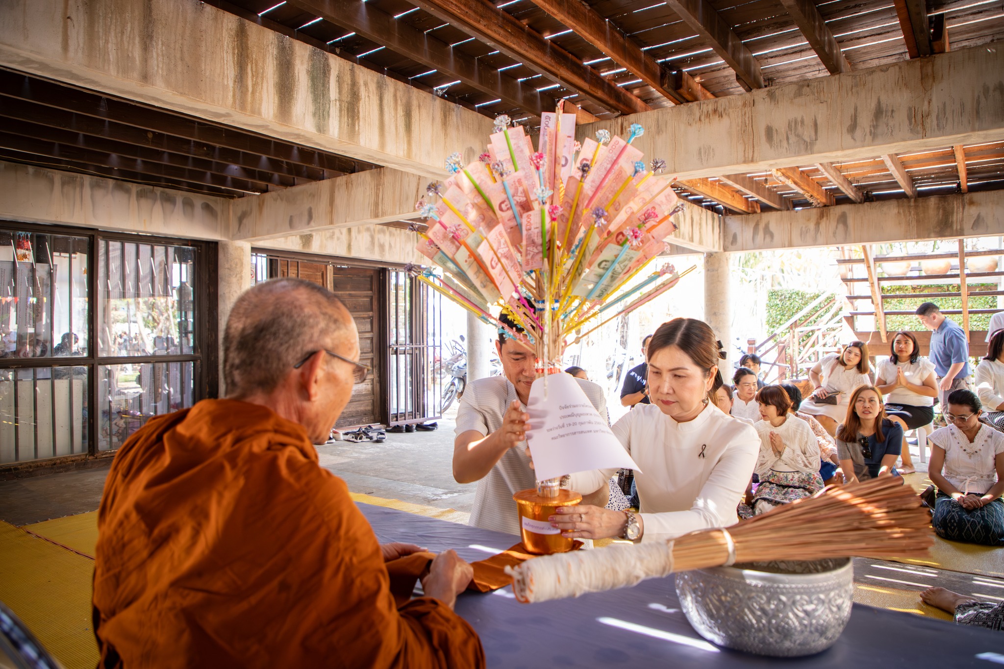 รองศาสตราจารย์ ดร.จันทิมา พลพินิจ คณบดี พร้อมด้วยผู้บริหาร และบุคลากร คณะวิทยาการสารสนเทศ มหาวิทยาลัยมหาสารคาม ร่วมถวายปัจจัยทำบุญ จำนวน 4,348 บาท ในงานประเพณีบุญผะเหวด มหาวิทยาลัยมหาสารคาม ประจำปี 2569 เพื่อสืบสานประเพณีวัฒนธรรมอันดีงามของท้องถิ่นอีสาน